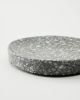 Круглая мыльница из камня терраццо серого цвета.
