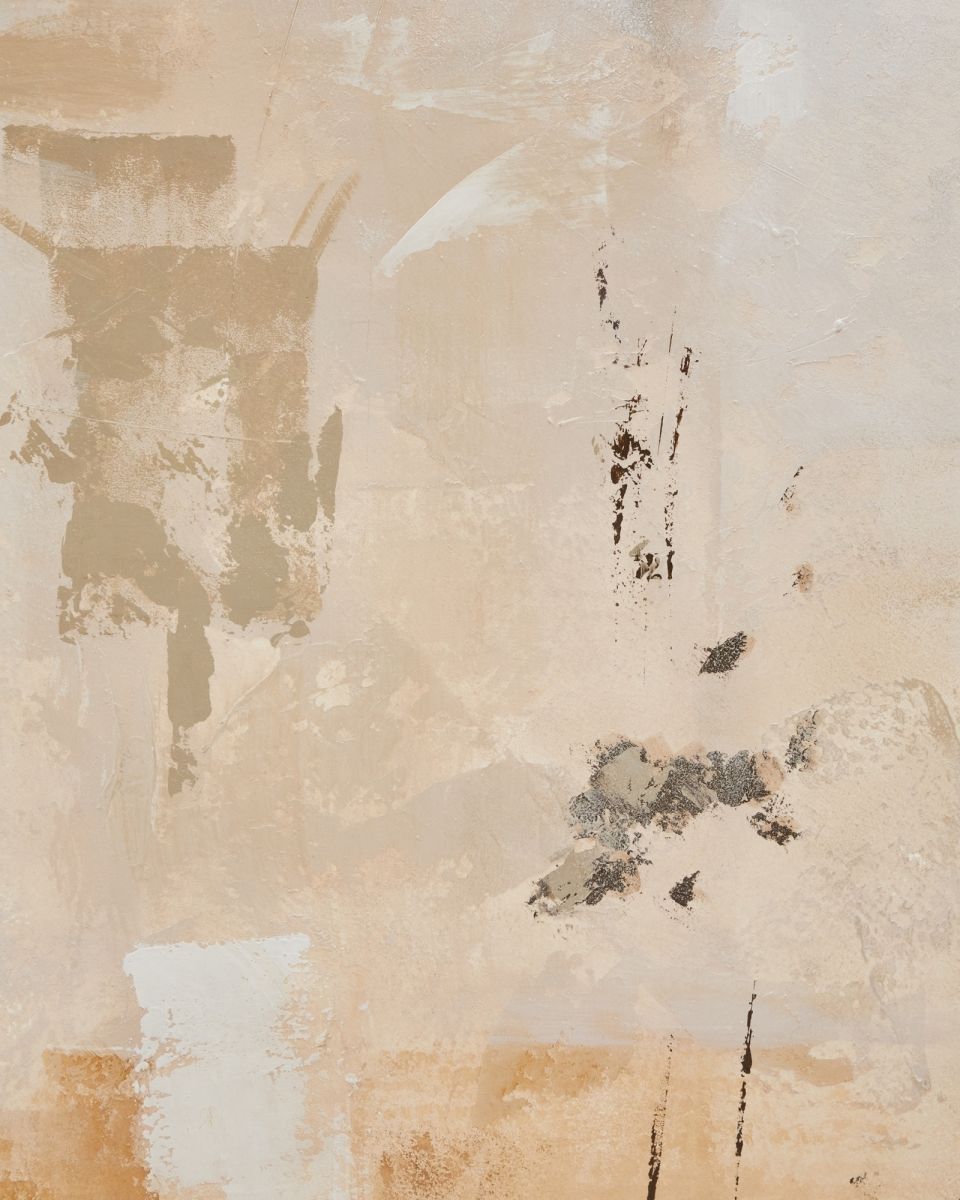 Картина Silpa состоит из абстрактных цветовых пятен нейтральных тонов, таких как серый, бежевый и кремовый, на нейтральном фоне. Эта коллекция передает спокойствие и идеально подходит для всех типов помещений.