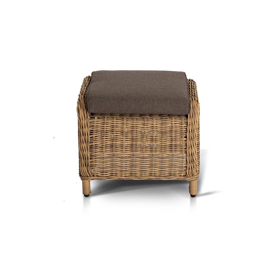 Пуф «Толедо» дополняет плетеные кресла и способен придать отдыху еще больший комфорт. Размер модели – 510×420×470 мм.Алюминиевый каркас используется при изготовлении основы пуфа. В роли декоративного элемента выступает ручная оплетка, созданная из искусственного ротанга вида «гиацинт» . Представлена в соломенном цвете.В комплект с плетеным пуфом идет мягкая подушка серо-коричневого оттенка. При пошиве изделия используется высококачественный полиэстер, его плотность 230гр/м2. Материал обрабатывается влагоотталкивающей пропиткой.