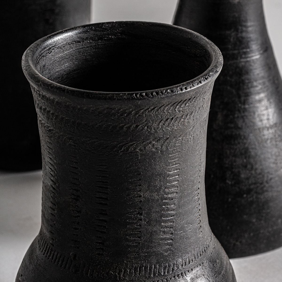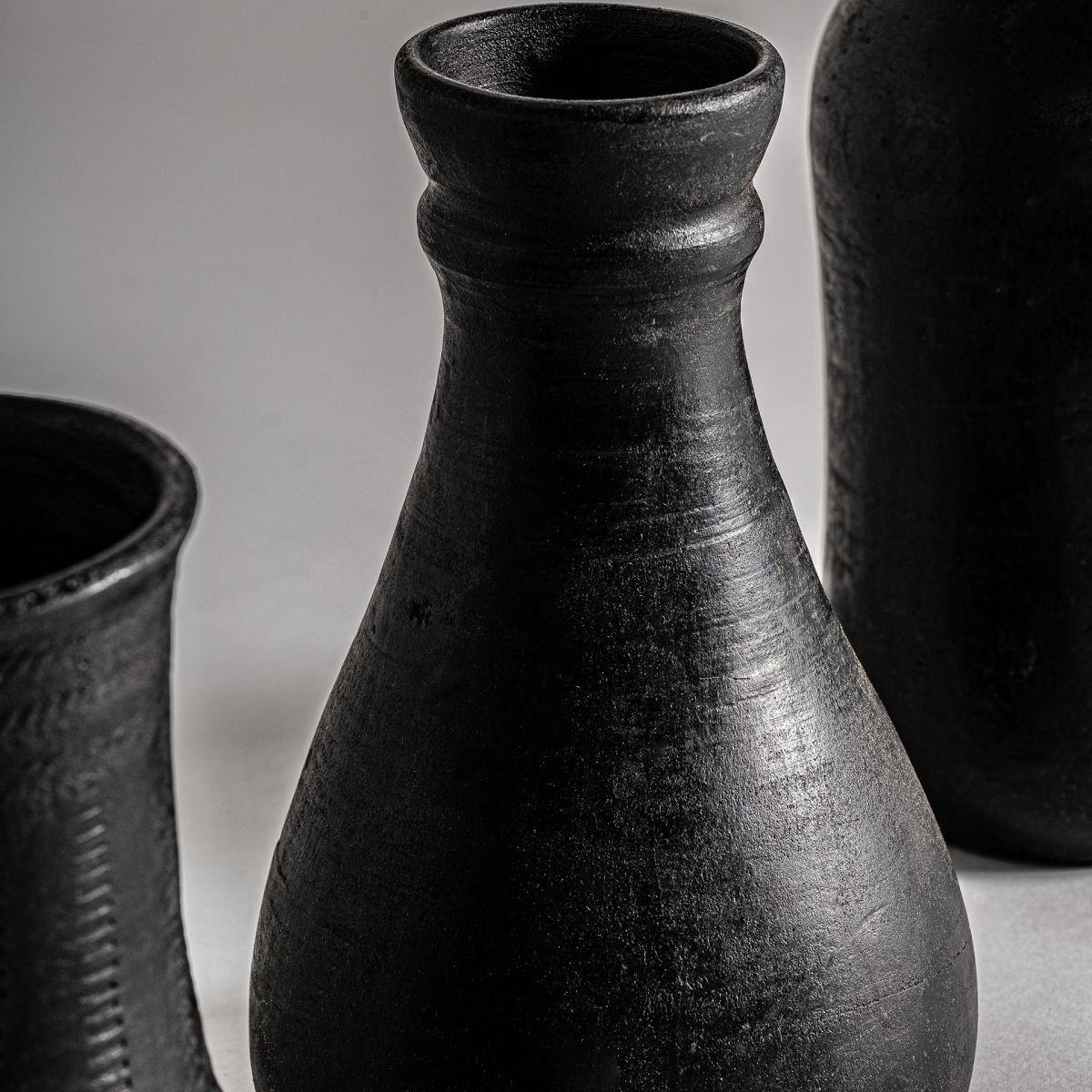 Ваза j/3, черная, в современном стиле. Изготовлен из терракоты.
