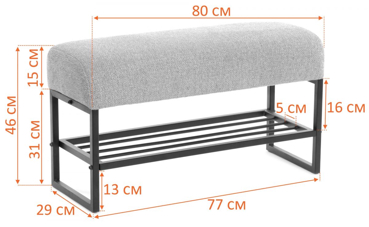 велюр/букле, VT shape wood rose Банкетка-обувница Charli Lux — это отличное сочетание стиля и практичности, идеально подходящее для прихожей, гардеробной или балкона. Ее прочная конструкция из металла выполнена в популярном стиле лофт, что делает ее не только функциональной, но и привлекательной с эстетической точки зрения. Открытая полка для обуви позволяет удобно хранить обувь, сумки и другие вещи, сохраняя при этом порядок в вашем пространстве. Компактные размеры банкетки позволяют разместить ее даже в малогабаритных помещениях, таких как узкие прихожие, лоджии или дачные дома. Конструкция обувницы даст вашей обуви необходимую вентиляцию, предотвращая накопление влаги и обеспечивая ее быстрое высыхание. Это повышает долговечность как обуви, так и самой банкетки, ведь металл обладает высокой прочностью и устойчив к механическим повреждениям. Порошковое покрытие защищает стальные элементы от коррозии и появления ржавчины, что существенно увеличивает срок службы изделия. Банкетка