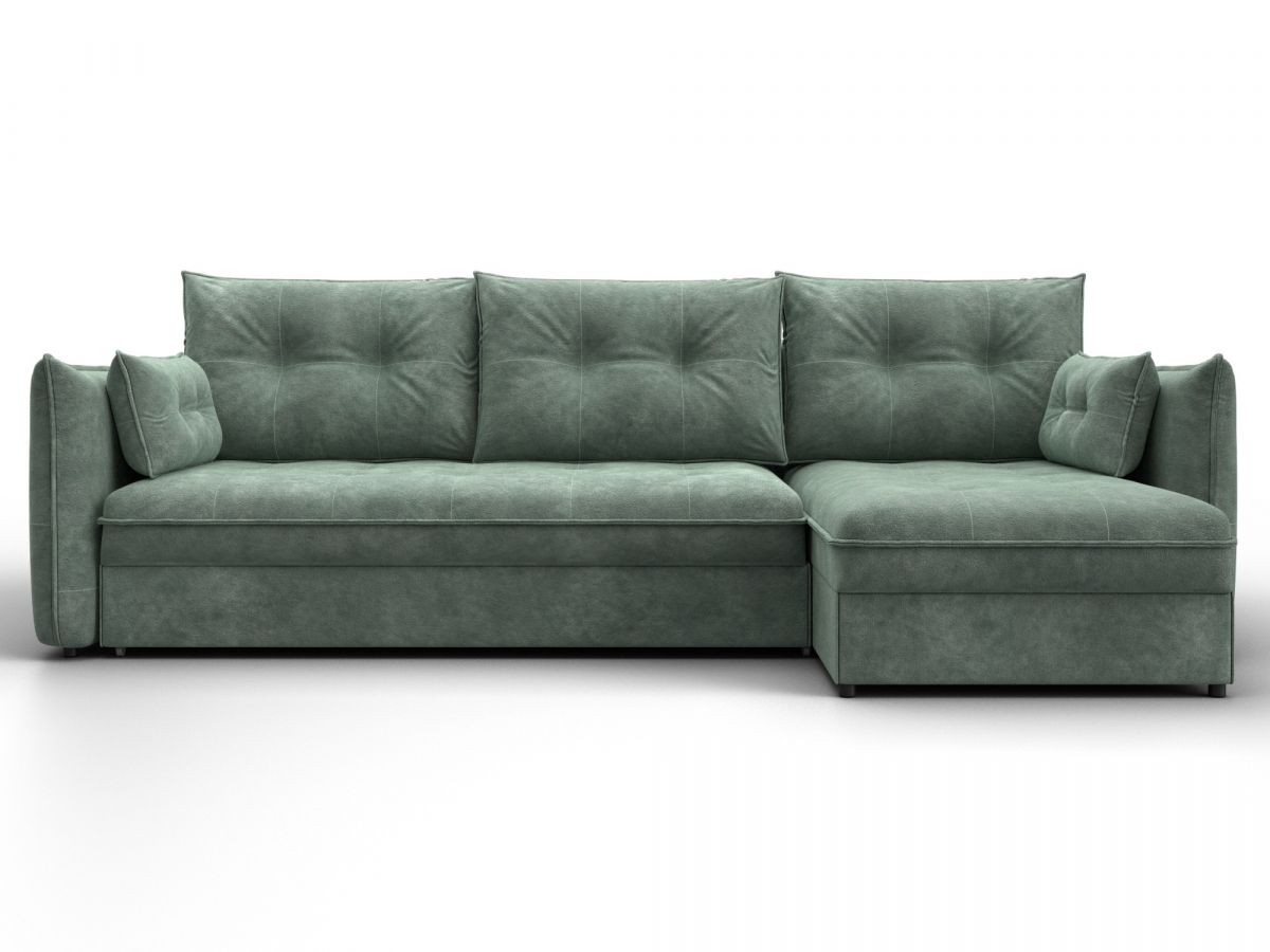 4. Диван угловой Лига-100 НПБ угол универсальный, велюр, brut 08 зеленый