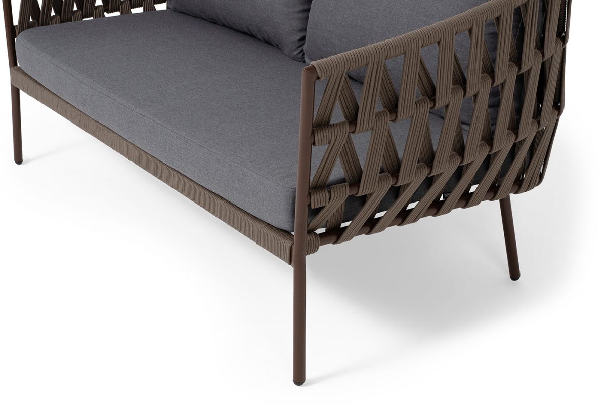 • "Диего" диван 2-местный плетеный из роупа, каркас алюминий коричневый (RAL8016) муар, роуп коричневы - 6