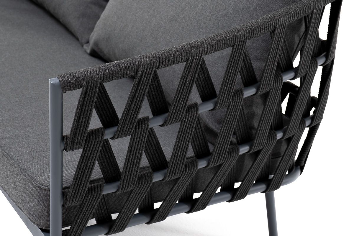 4. "Диего" диван 2-местный плетеный из роупа, каркас алюминий темно-серый (RAL7024) муар, роуп темно-се