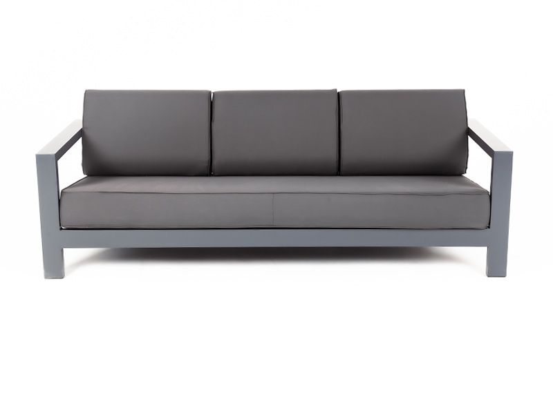 "Гранада" диван 3-местный, каркас алюминий темно-серый (RAL7024) муар, ткань темно-серая 027