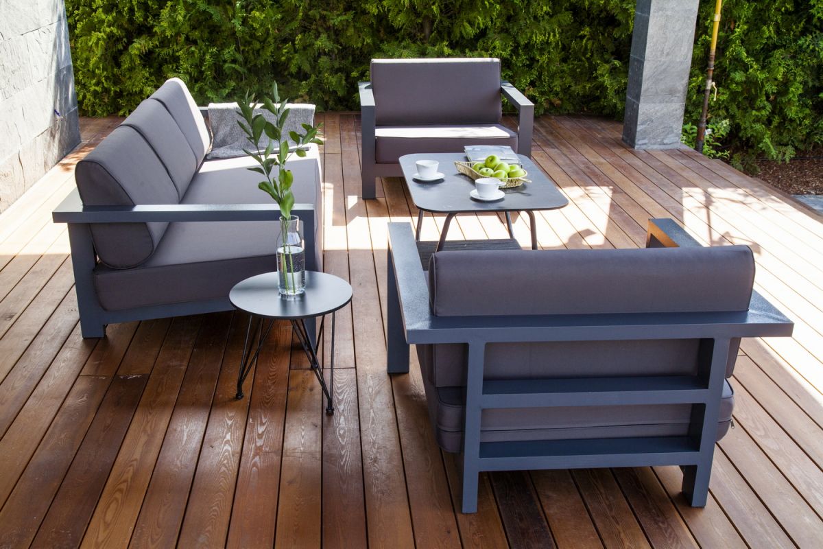 4. "Гранада" диван 3-местный, каркас алюминий темно-серый (RAL7024) муар, ткань темно-серая 027