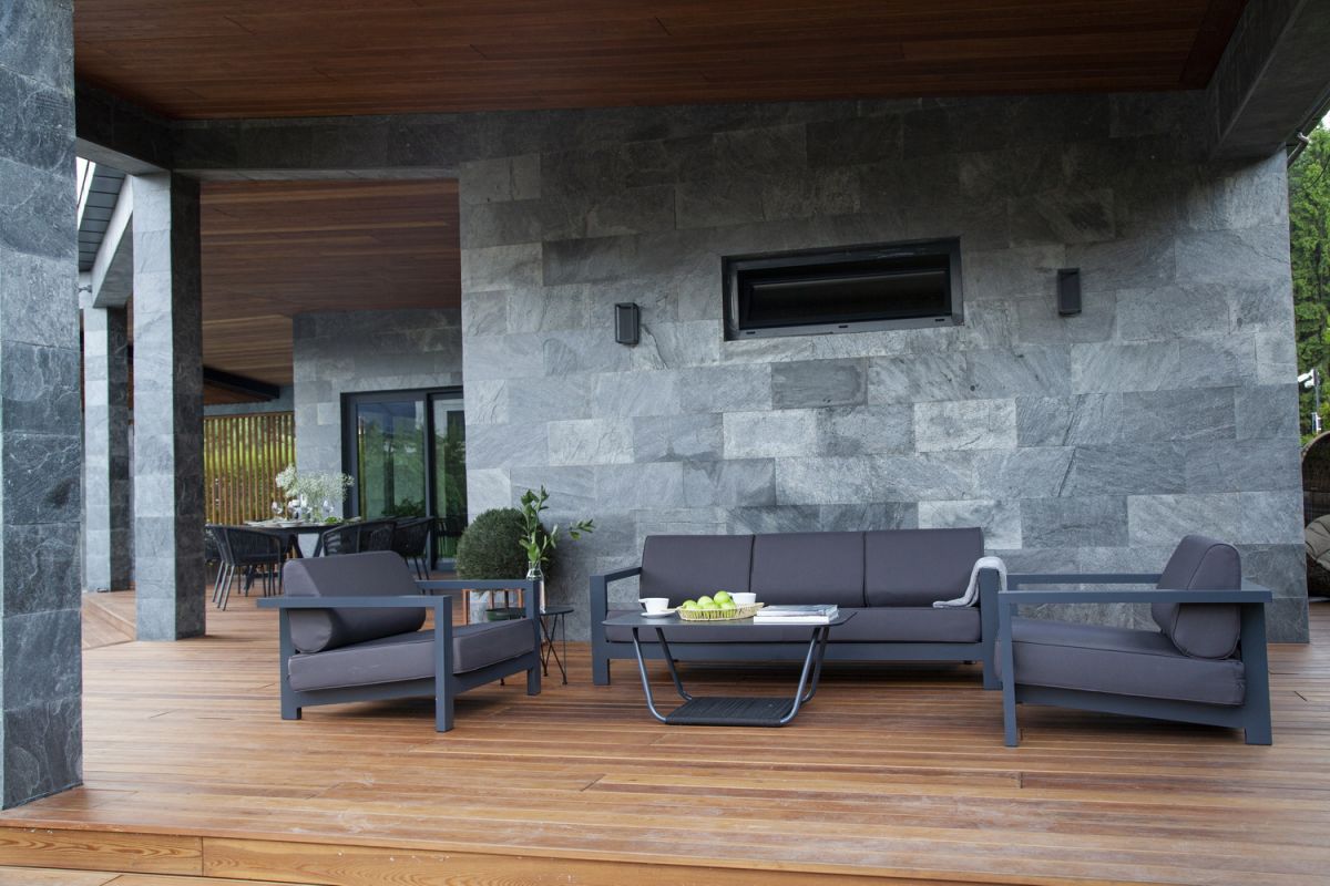 • "Гранада" диван 3-местный, каркас алюминий темно-серый (RAL7024) муар, ткань темно-серая 027 - 4