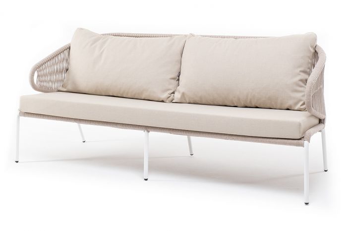 5. "Милан" диван 3-местный плетеный из роупа, каркас алюминий белый муар, роуп бежевый круглый, ткань б