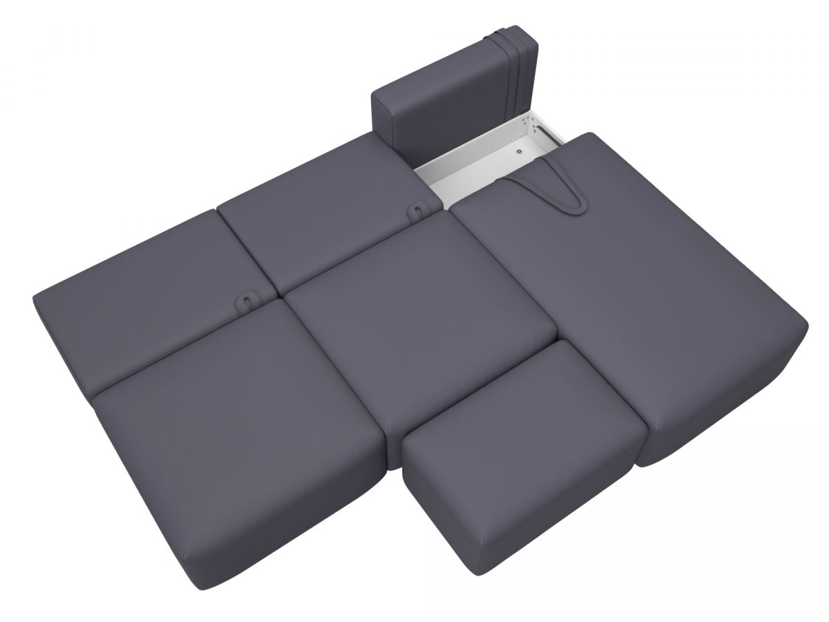 130071 Диван угловой модульный с пуфом Лига-060 НПБ Лонг угол универсальный | экокожа | grifon 15 серый
