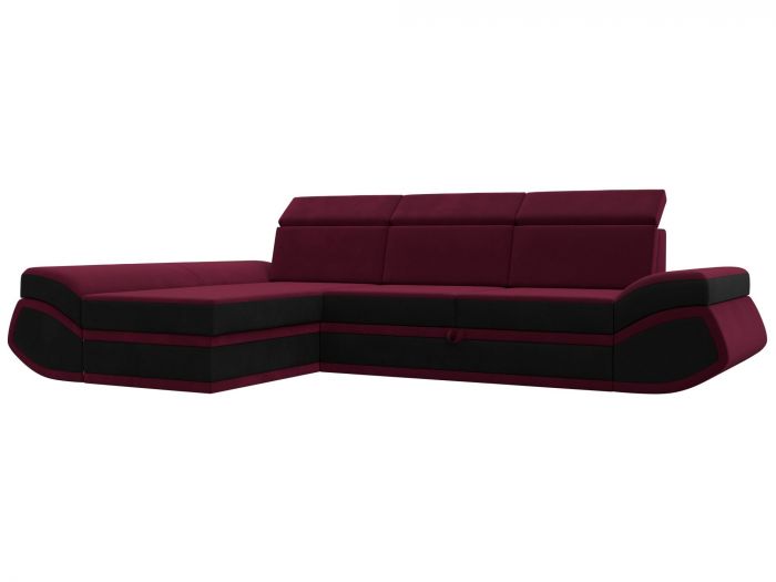Диван угловой Лига-032 левый угол, микровельвет, бордовый, черный