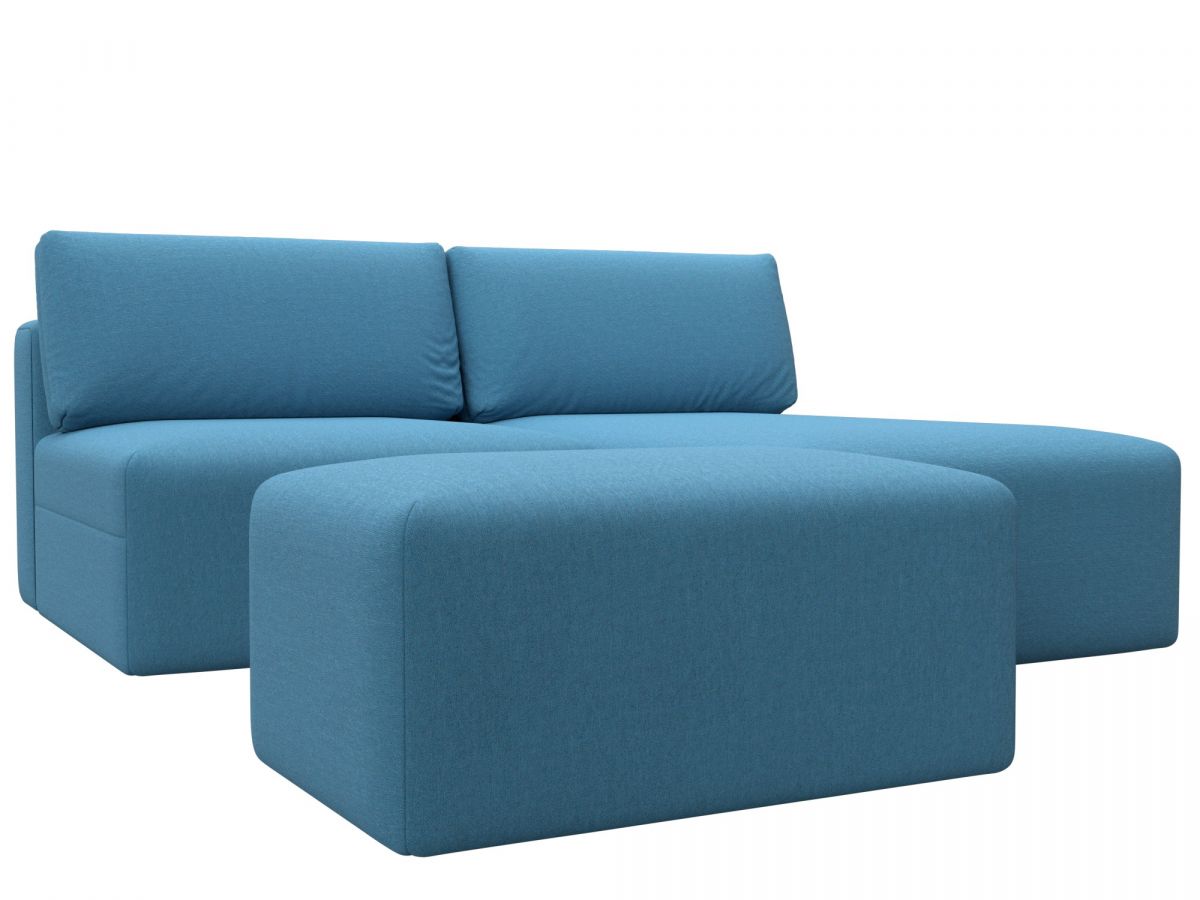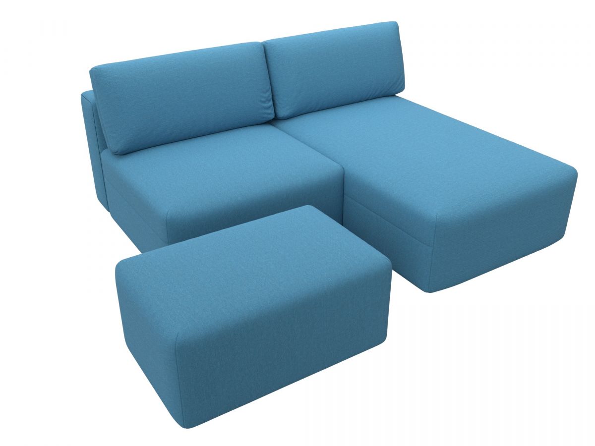 Диван угловой модульный с пуфом Лига-060 НПБ угол универсальный, рогожка, амур 10 голубой