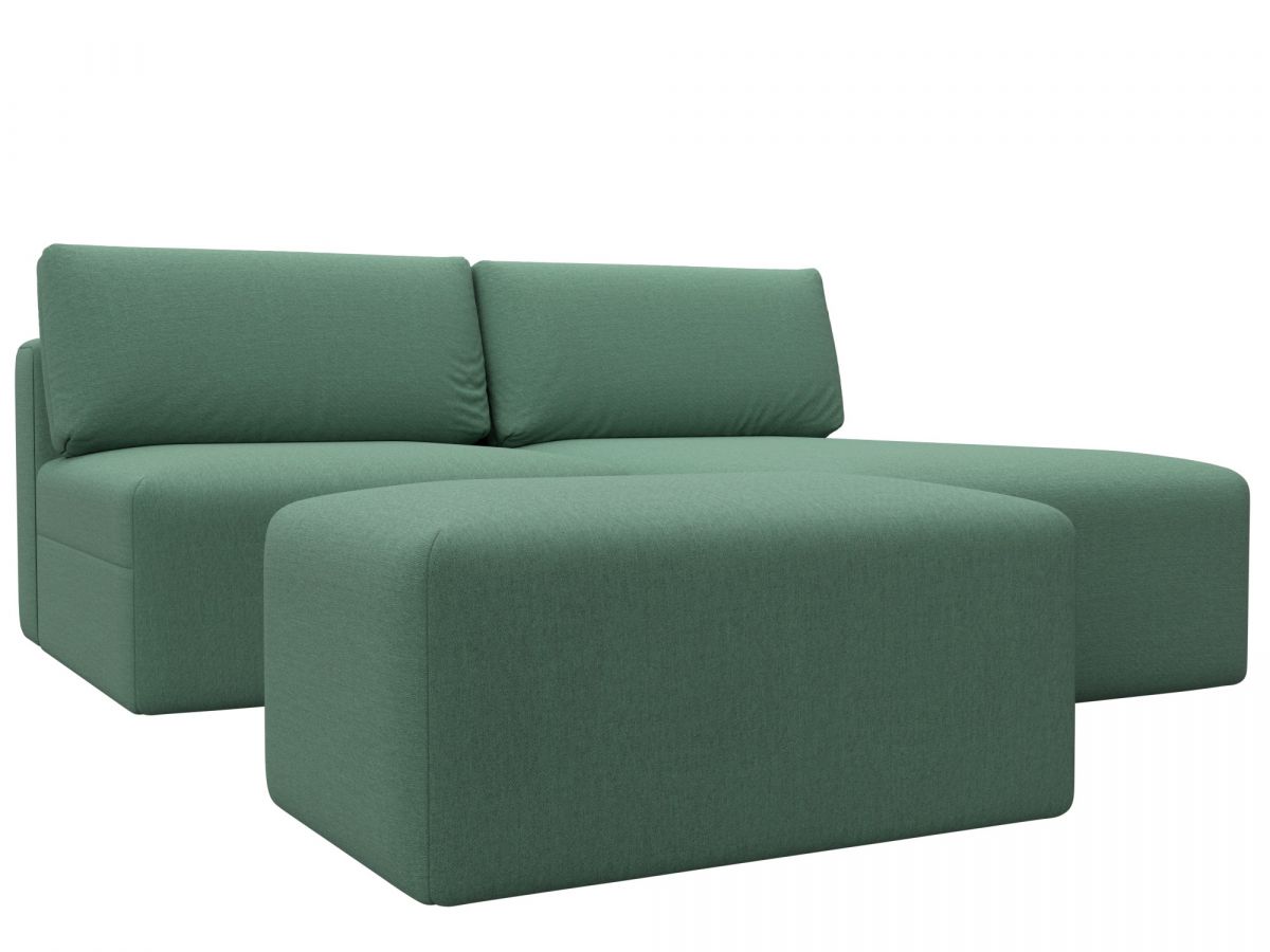 Диван угловой модульный с пуфом Лига-060 НПБ угол универсальный, рогожка, амур 11 зеленый