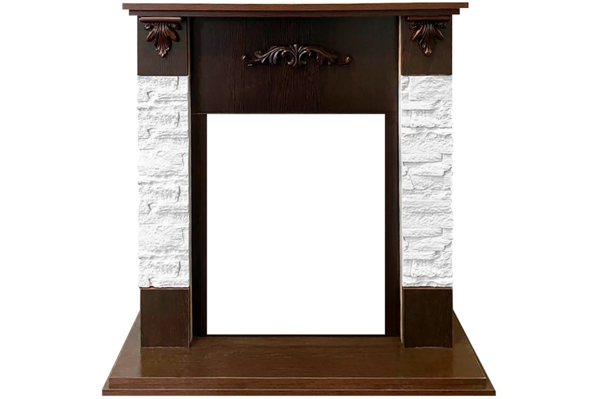 Каминокомплект Hamburg - Сланец белый - Темный орех с очагом Majestic FX M Black RC
