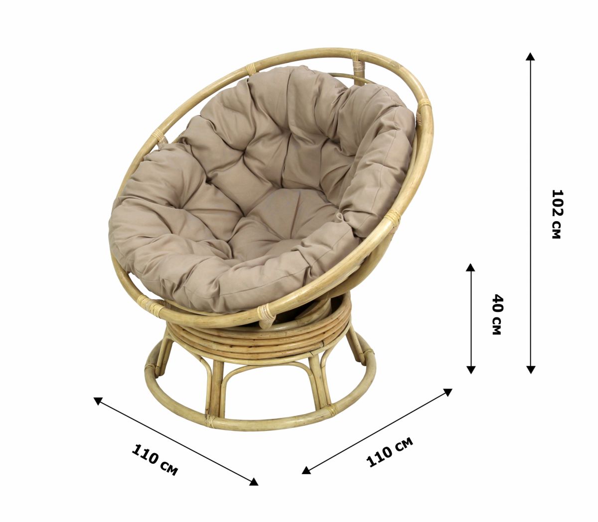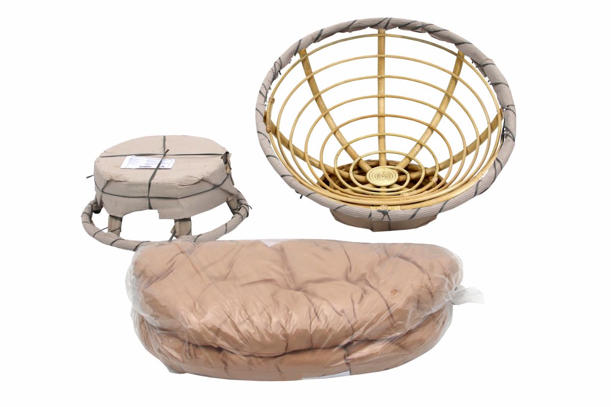5. Кресло -качалка вращающееся Папасан Roker D110 арт.CV-18H (каркас медовый 2 части, подушка беж)