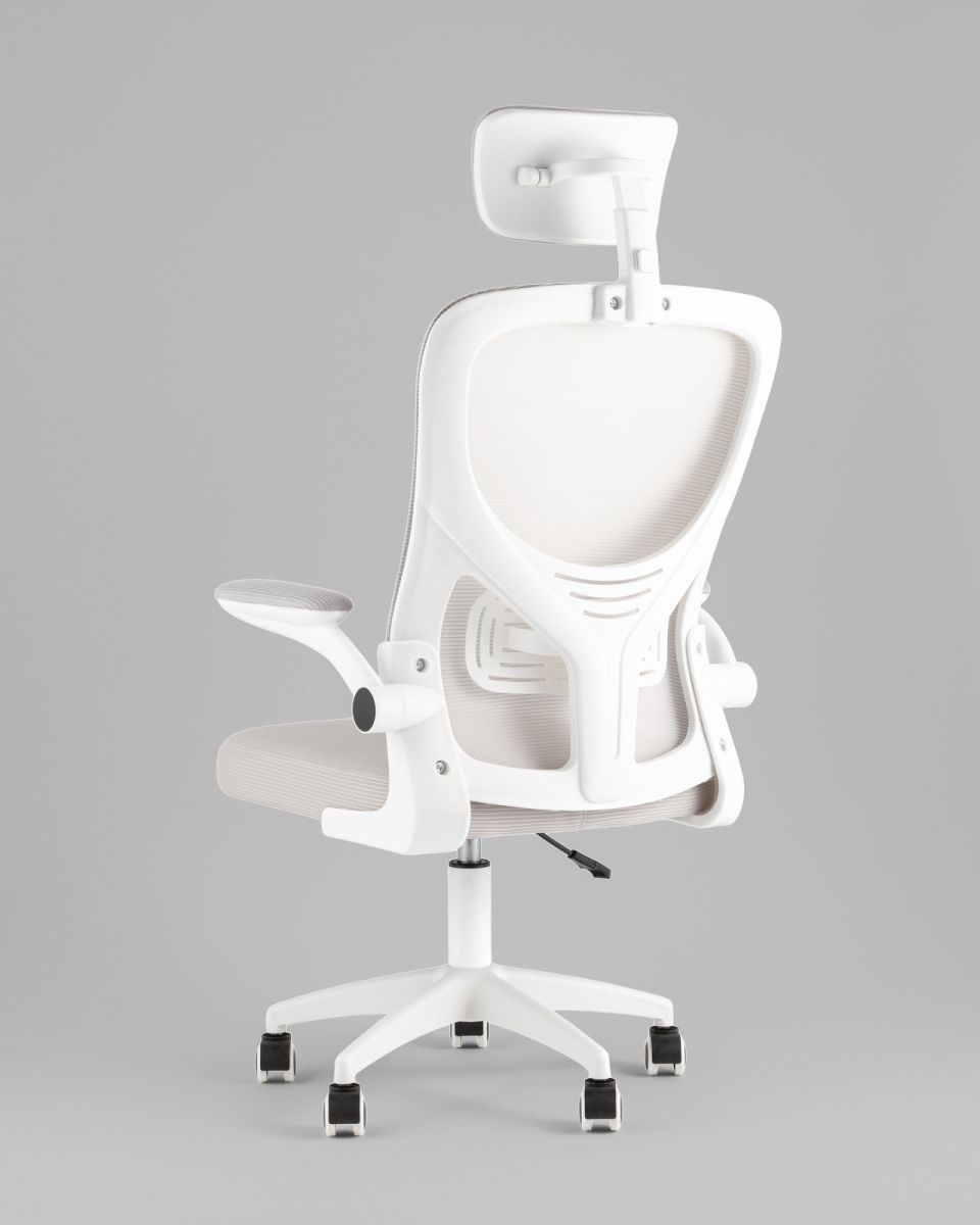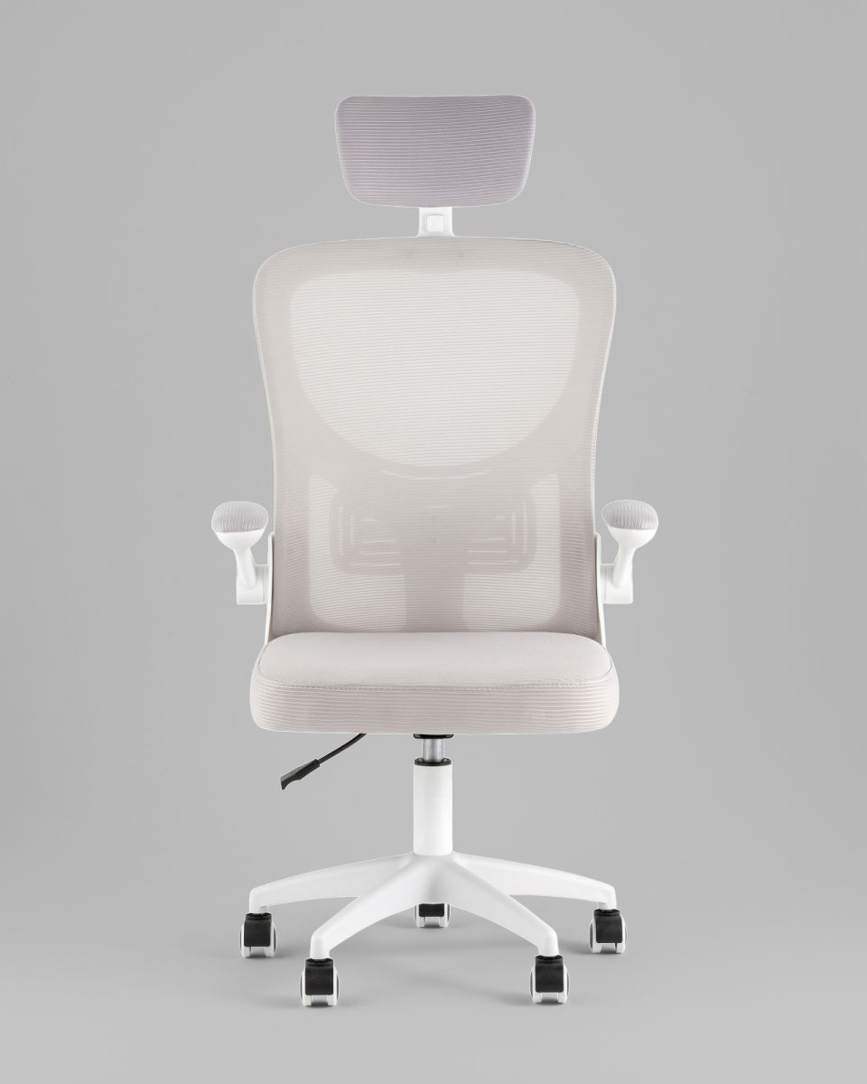 5. Кресло офисное TopChairs Core серый с подголовником пластик белый