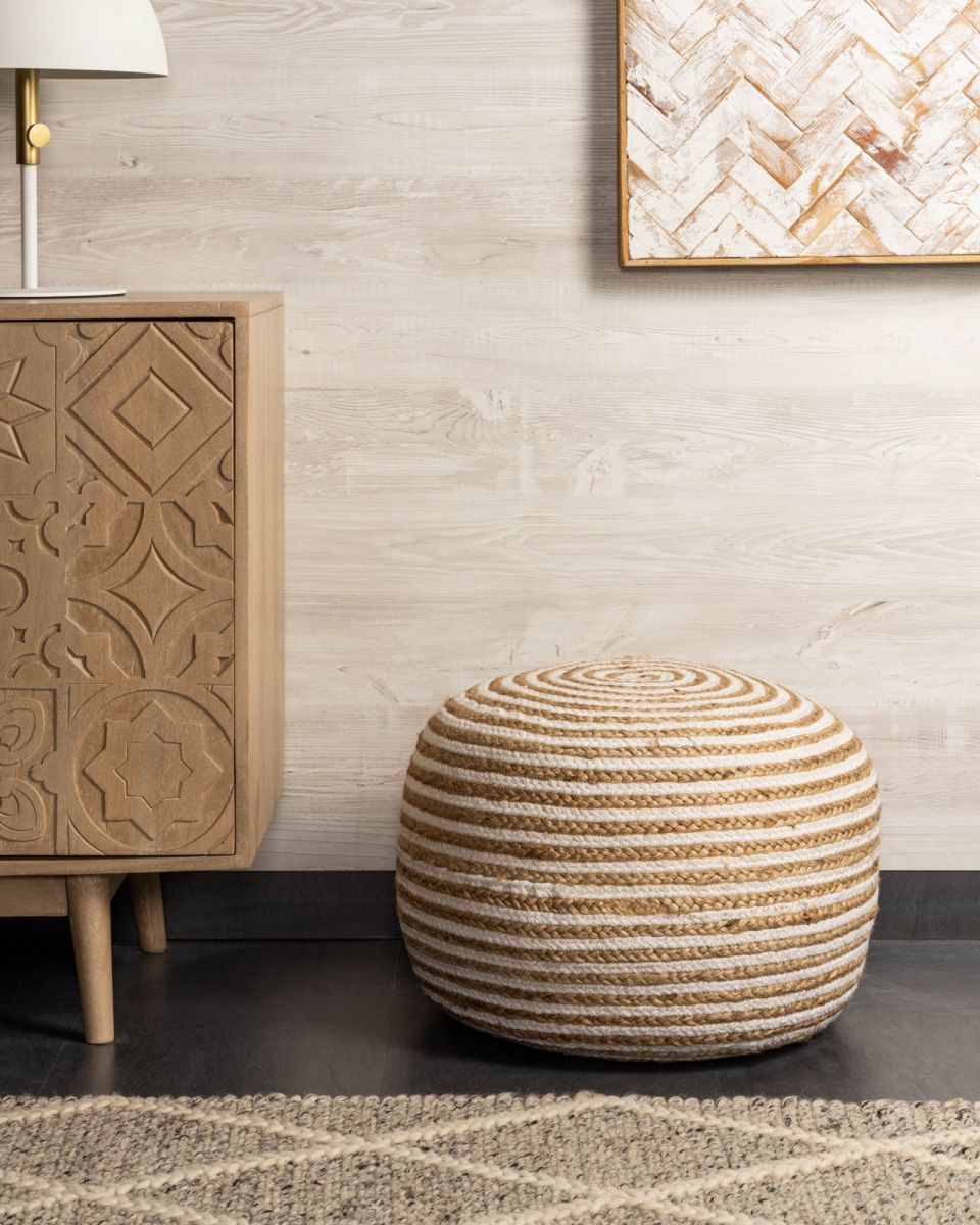 Пуф Samy от фабрики La Forma (ex Julia Grup) – стильный шар, как дополнительное место в любой обстановке.Пуф однозначно легко и стильно вольется в ваш интерьер, ведь его вид совершенно очарователен. Плетеная фактура из хлопка и джута подчеркнута полосатым рисунком. А спокойное цветовое решение лаконично впишется в любую обстановку. Вам нужно дополнительное место? Выбирайте пуф Samy!Пуф имеет цилиндрическую форму, бескаркасный.Основной материал изготовления – натуральные волокна джута (60%) и хлопка (40%). Фактура плетеная. Наполнитель – шарики из пенополистирола (вспененного полистирола). Они прекрасно держат форму, обеспечивают комфортную посадку. Плотность пены – 16 кг/м3Общая максимальная нагрузка на пуф не должна превышать 120 кг.Размеры: ширина – 50/45 см, глубина – 50/45 см, высота – 35/40 см. Вес изделия – 2,9 кг.Чехол пуфа можно стирать на низких температурах без использования отбеливателей и абразивных веществ. Изделие предназначено только для домашнего использования.