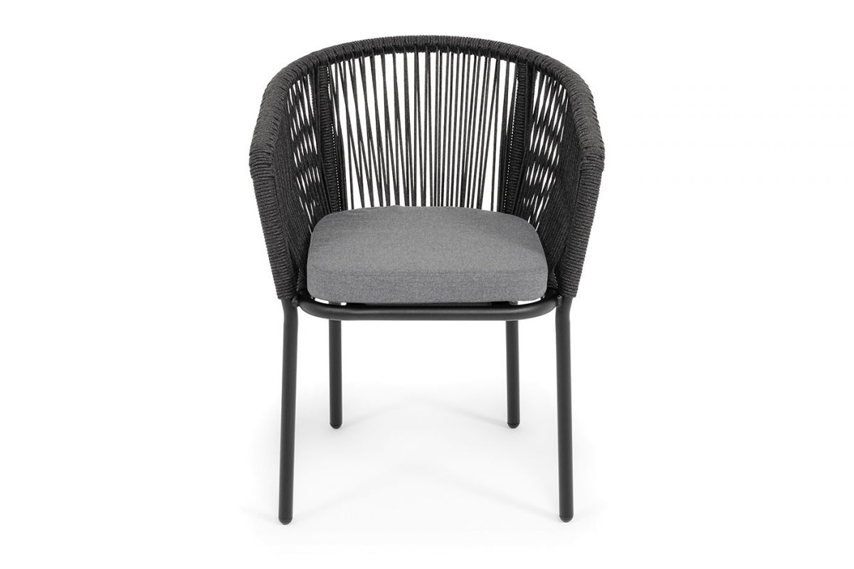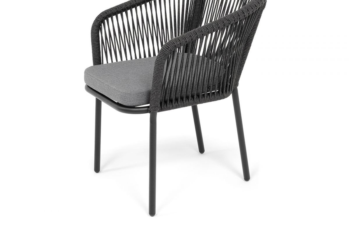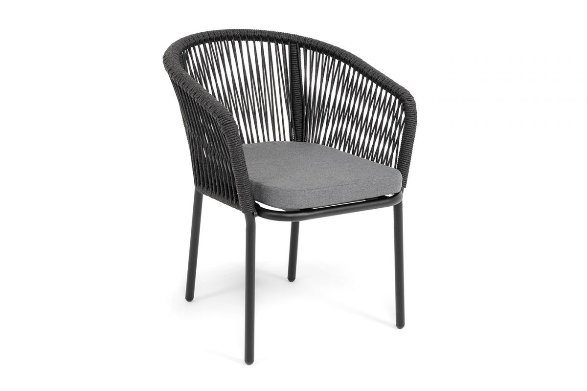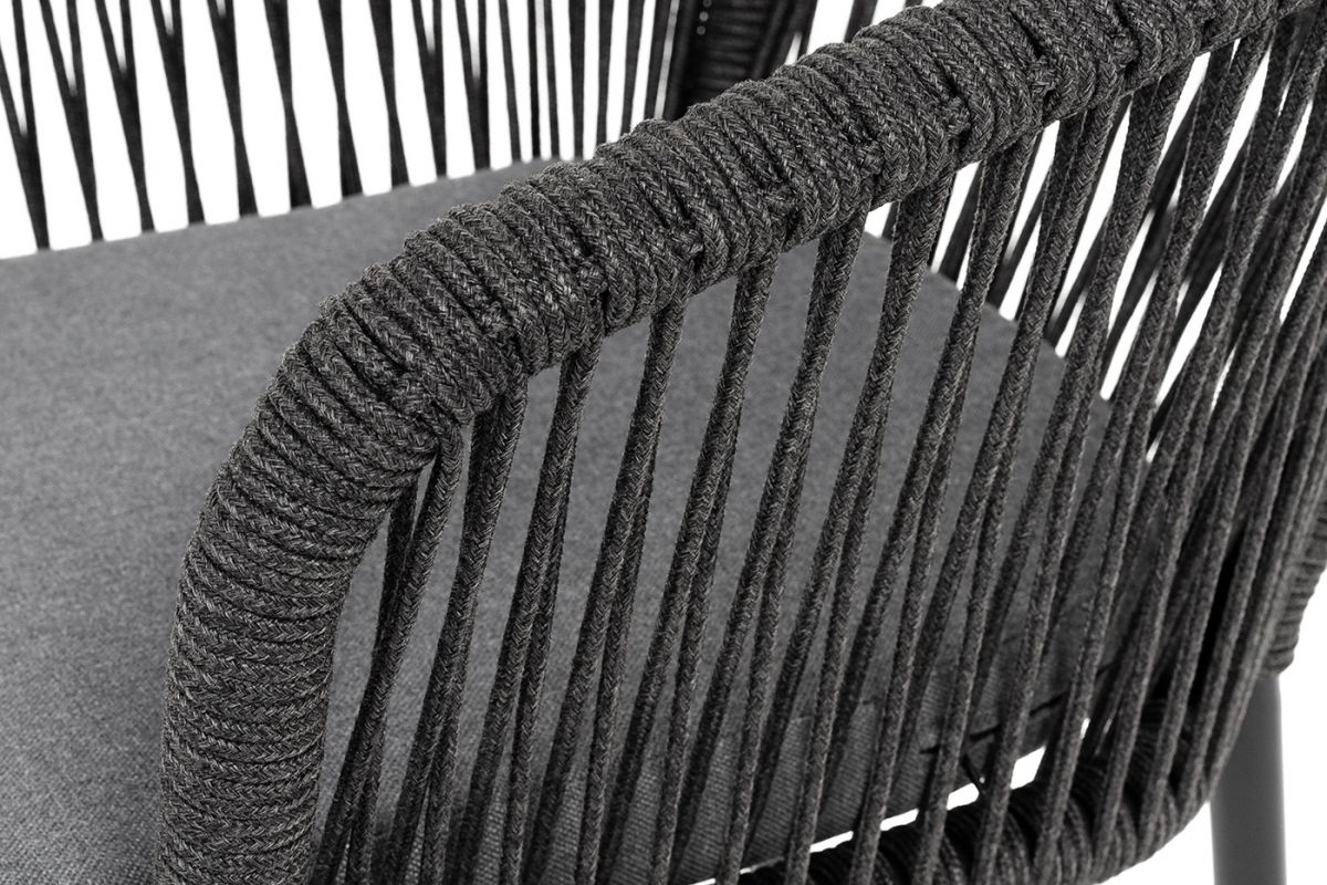 "Марсель" стул плетеный из роупа, каркас алюминий черный муар, роуп темно-серый круглый, ткань темно