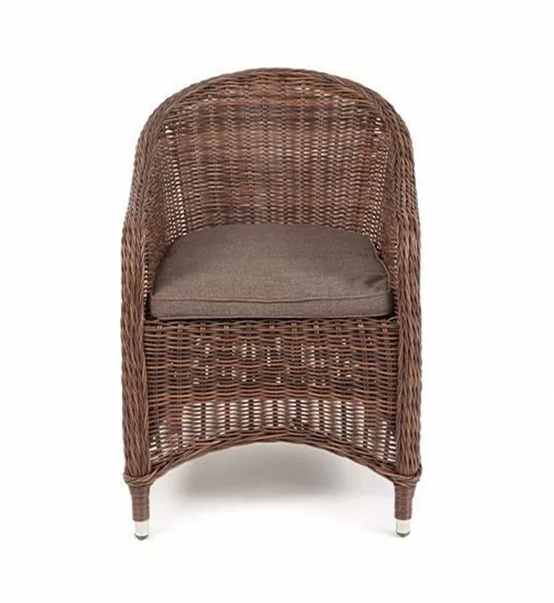 "Равенна" плетеное кресло коричневое. Стул в комплекте с подушками, алюминиевый каркас, круглый искусственный ротанг, ручное плетение, цвет коричневый с подушкой (цвет в ассортименте).