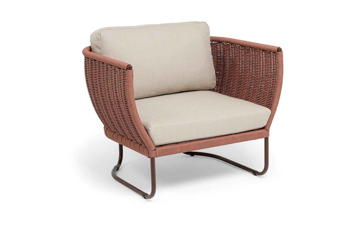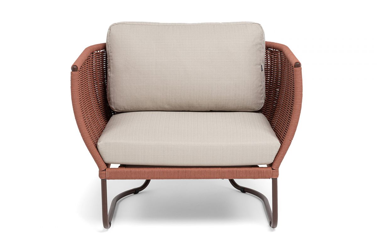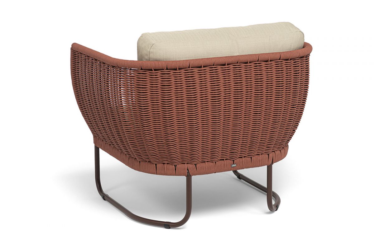5. "Фиджи" кресло плетеное из роупа, каркас алюминий коричневый (RAL8016) муар, роуп красный (8372) кру