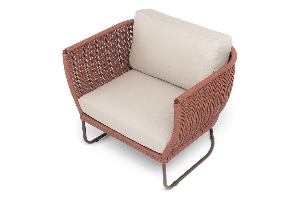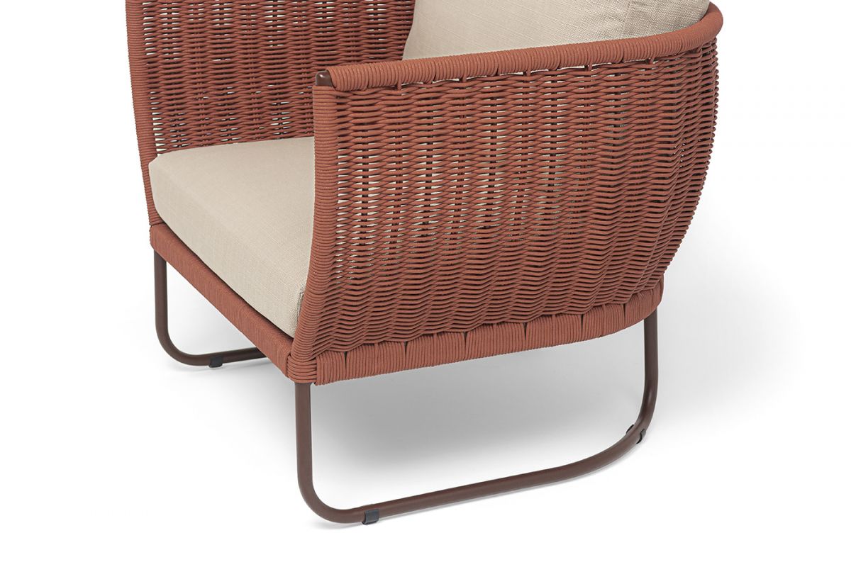 • "Фиджи" кресло плетеное из роупа, каркас алюминий коричневый (RAL8016) муар, роуп красный (8372) кру - 8