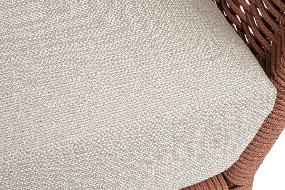 Плетеное кресло «Фиджи» с комплектом подушек — идеальное решение для кафе, ресторана или зоны отдыха на открытой веранде. Мягкие подушки добавляют уюта и делают пребывание в кресле по настоящему комфортным.Каркас выполнен из алюминия и окрашен порошковой краской в коричневый (RAL8016) цвет. Плетение боковины каркаса вручную оплетены роупом — эластичными синтетическими лентами из высокопрочных полиэфирных волокон. Оплетка - круглый tex, что придает креслу изысканный и оригинальный внешний вид.В комплект входят подушки с плотным наполнителем и съемными чехлами. Чехлы изготовлены из материала Mossle бежевого цвета, обработаны влагоотталкивающей пропиткой. Размер кресла: 1040×890×810 мм.Параметры кресла без подушек:Глубина сидения – 770 мм;Высота сидения – 325 мм;Высота спинки – 480 мм.