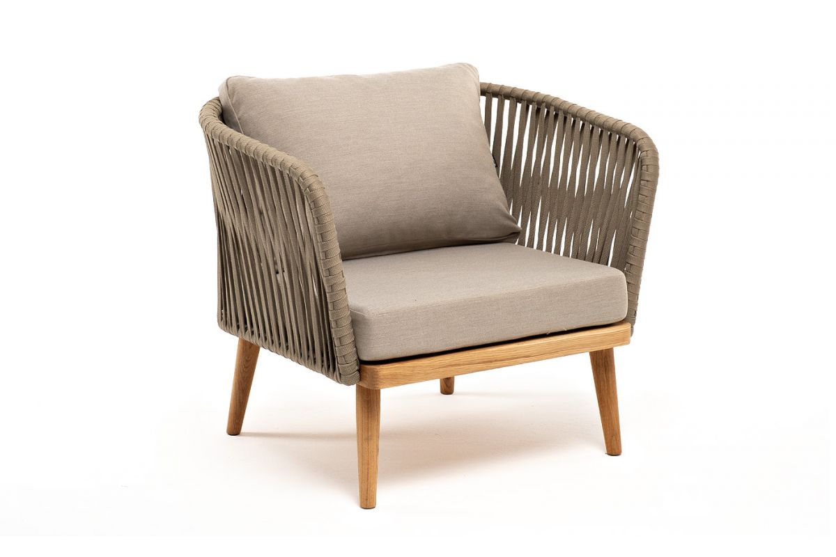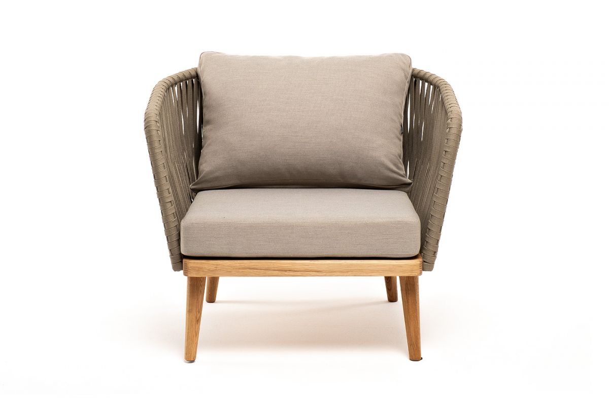 "Мальорка" кресло плетеное из роупа, основание дуб, роуп серо-коричневый 23мм, ткань бежевая 15052