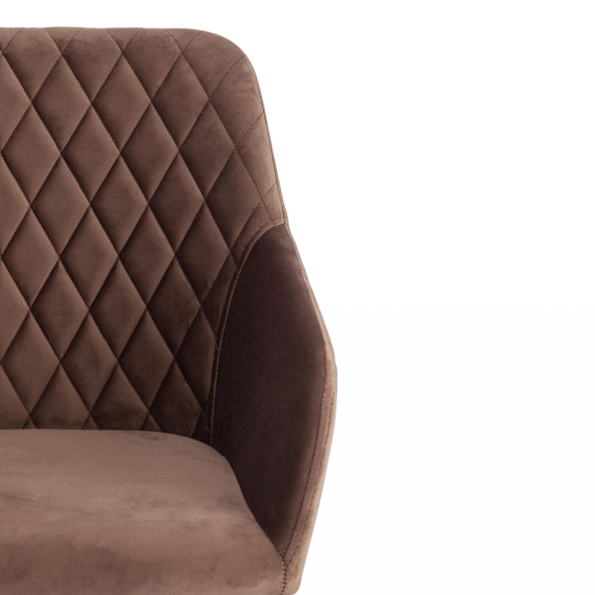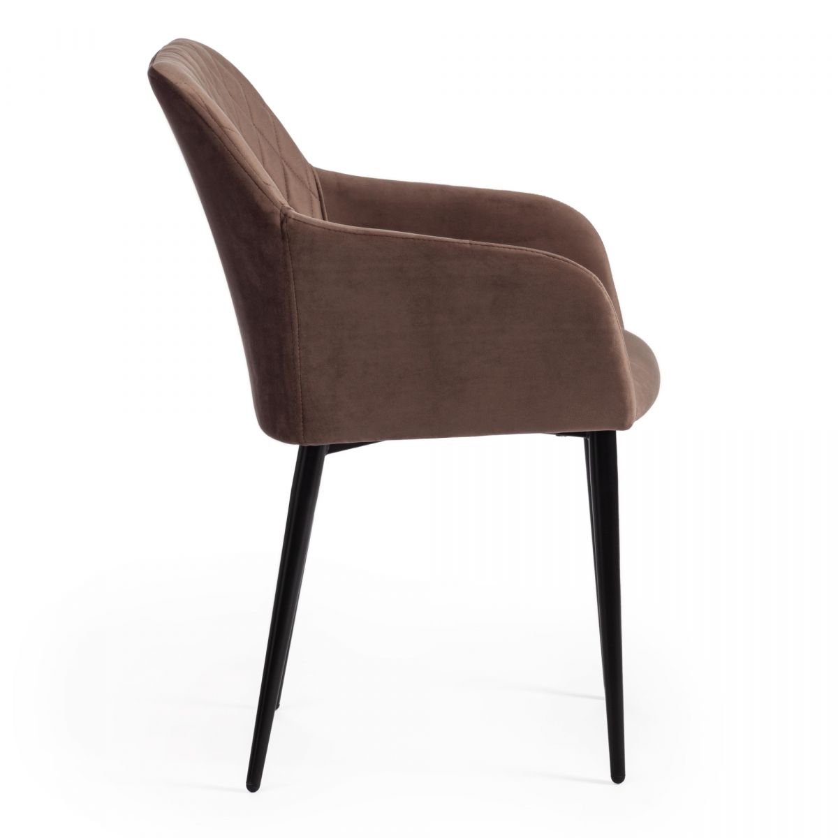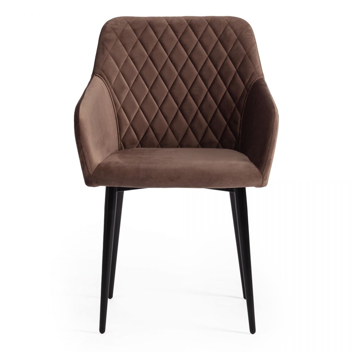 ткань/металл, 58х55х83 см, высота до сиденья 48 см, коричневый barkhat 12/черный Великолепное кресло BREMO из коллекции Modern – это удачное сочетание простоты и элегантности. Простая форма, благородный цвет обивки, стеганая спинка и визуально легкие металлические ножки выгодно выделают кресло среди привычной мебели. Удобное сиденье, эргономичная спинка и мягкие подлокотники обеспечивают комфортную посадку для продолжительного отдыха. Надежный каркас кресла изготовлен из многослойной фанеры толщиной 10 мм. Мягкая, бархатистая и приятная на ощупь поверхность сиденья и спинки подарит максимальный комфорт и уют. Тканевая обивка коричневого цвета из велюра не мнётся, не меняет форму, пропускает воздух, экологична и гипоаллергенна. Металлические ножки с порошковым покрытием и пластиковыми подпятниками делают кресло прочным и устойчивым. Оно прослужит вам долгие годы, радуя своим первоначальным видом. Кресло подойдёт для гостиной, для кухни или для спальни. Кресло очень простое в сборк