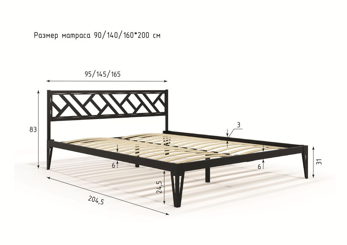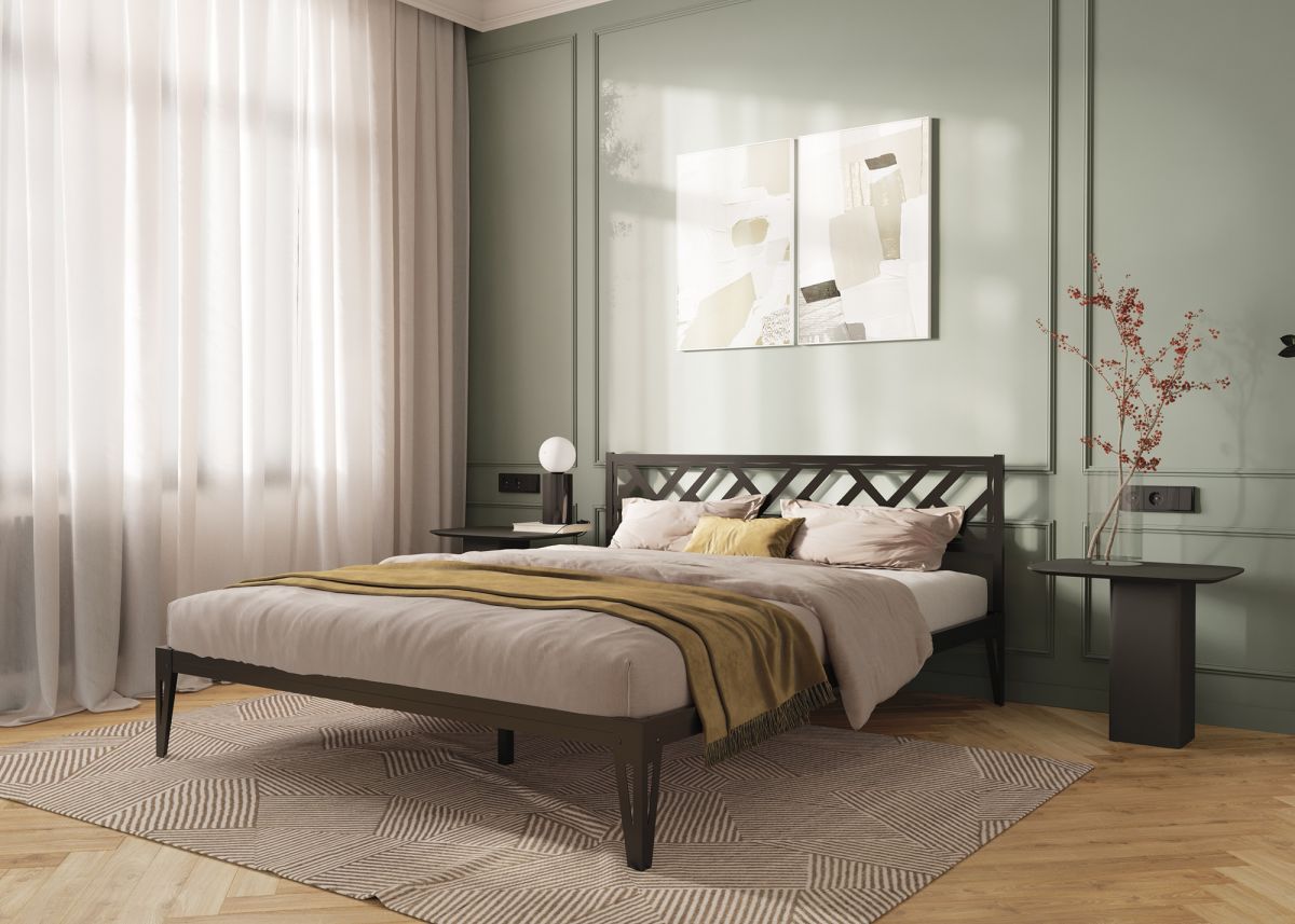 Металлическая кровать Айрис. Добавляет в интерьер легкости. Металлическая кровать отличается устойчивостью и долговечностью. Максимальная равномернораспределенная нагрузка на кровать не более 400 кг.