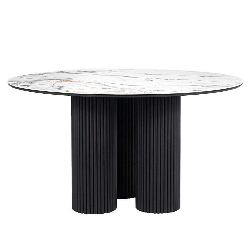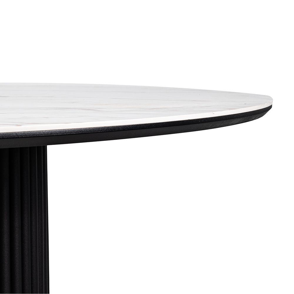 Стильный нераздвижной стол Aura – идеальное сочетание элегантности и функциональности. Стол Aura обладает глянцевой премиальной круглой столешницей из керамики, имитирующей белый мрамор, диаметром 110 см. Высококачественная керамическая столешница: поверхность стола не царапается, не впитывает жидкость и легко моется, что обеспечивает долгий срок службы и минимальный уход. Устойчивость к перепадам температур: идеально подходит для использования в любых условиях, не теряя своего великолепного вида. Роскошный дизайн: кристально-белый фон столешницы с элегантными серыми прожилками и изысканными золотистыми деталями добавляет нотку роскоши и утонченности интерьеру. Элегантная круглая опора: металлическая основа белого цвета придает столу стабильность и стильный современный вид, идеально гармонируя с мраморной столешницей. Стол Aura – это воплощение утонченного стиля и непревзойденного качества, которое украсит любой интерьер и станет любимым местом для встреч и общения. Подчеркните уникал Диаметр столешницы: 140