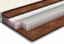 Кокосовая койра, используемая в качестве наполнителя для этой модели oртопeдического матраса – это экологически чистый, долговечный, природный материал, получаемый из ореха кокосовой пальмы. Преимущества этого материала: пропитанный латексом обладает бактерицидным свойством, не гниет ни при какой влажности, не вызывает аллергических реакций. Полужесткая структура койры обеспечивает оптимальную упругость и долговечность матраса. В качестве основы матраса используется пружинный блок Duet, который имеет особую конструкцию - "пружина в пружине", т.е. в "основную" пружину вкладывается пружина меньшего диаметра. И в случае если внешняя пружина, которая имеет больший диаметр, не может справиться с нагрузкой, ее поддерживает внутренняя. При такой конструкции матрас обеспечивает надежную поддержку для позвоночника человека с большим весом, но при этом он не будет слишком жестким для легкого партнера. Каждая пружина помещена в отдельный чехол из спанбонда и физически не связана с соседней. Блок