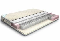 Одна сторона-наполнитель Холлофайбер Хард-синтетическое нетканное полотно, которое обеспечивает матрасу упругость, достаточную для сохранения начальной формы (чуть мягче матраса с кокосом). Другая сторона- искусственный латекс, пропитанный антибактериальным гипоаллергенным составом. Латекс имеет мелкоячеистую структуру, которая вместе с пропиткой обеспечивает гигроскопичность. По своим физическим свойствам искусственный латекс более упругий по сравнению с натуральным латексом. Низкая стоимость этого наполнителя делает его весьма привлекательным материалом для изготовления oртопeдических матрасов. В качестве основы матраса используется пружинный блок Duet, который имеет особую конструкцию - "пружина в пружине", т.е. в "основную" пружину вкладывается пружина меньшего диаметра. И в случае если внешняя пружина, которая имеет больший диаметр, не может справиться с нагрузкой, ее поддерживает внутренняя. При такой конструкции матрас обеспечивает надежную поддержку для позвоночника человека с