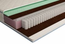 Данная модель создана на основе независимого пружинного блока TFK. В качестве наполнителя используется комбинация из латекса Аloe Vera (натуральный латекс из сока гевеи, в процессе вспенивания смешан с искусственным латексом. В процессе производства в него введены микрокапсулы Аloe Vera, которые служат мощным природным гипоаллергенным антиоксидантом) и кокосовой койры- натуральный материал, придает естественные вентиляционные свойства, эластичность, прочность, упругость, гигиеничность, антиаллергеность, антимикробность, долговечность). С другой стороны комбинация из кокосовой койры и натурального латекса (натуральный материал, представляющий собой вспененный сок дерева гевеи). Приятная на ощупь матрасная ткань обладает высокой прочностью и долговечностью. Чехол съемный, имеет молнию по трем сторонам матраса. Плотная классическая полусинтетическая матрасная ткань с особым жаккардовым плетением, приятная на ощупь и безупречно устойчивая к истиранию. Oртопeдический матрас со средне-жестк