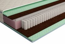 Данная модель матраса создана на основе независимого пружинного блока TFK. В качестве наполнителя используется кокосовая койра (100% натуральный материал, представляет собой пропаренные волокна кокосового ореха и прессованной в маты правильной формы) и латекс Аloe Vera (натуральный латекс из сока гевеи, в процессе вспенивания смешан с искусственным латексом. В процессе производства в него введены микрокапсулы Аloe Vera, которые служат мощным природным гипоаллергенным антиоксидантом). Приятная на ощупь матрасная ткань обладает высокой прочностью и долговечностью. Чехол съемный, имеет молнию по трем сторонам матраса. Плотная классическая полусинтетическая матрасная ткань с особым жаккардовым плетением, приятная на ощупь и безупречно устойчивая к истиранию. Oртопeдический матрас со средне-жестким эффектом. Рекомендована нагрузка, до 120 кг на одно спальное место. Основа: пружинный блок TFK (256/м2), высота: 14 см 1 сторона средне-жесткая, наполнитель - латекс Аloe Vera (3см), кокос
