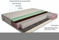 Матрас выполнен на основе блока независимых пружин TFK, состоящего из 256 пружин на 1 кв. м. Особенность данного пружинного блока состоит в том, что все пружины изолированы друг от друга чехлом из нетканого материала. Таким образом, нагрузка распределяется точечно: сжимаются только те пружины, на которые идет давление. Стороны матраса отличаются по жёсткости, что не только упрощает выбор спальной поверхности, но и делает возможным смену уровня комфорта в процессе использования матраса. Эффект достигается за счёт комбинирования натуральных наполнителей – латекса Аloe Vera и кокосовой койры. Такая комбинация позволяет получить универсальную среднюю жесткость, за счет этого матрас подойдет людям разного веса и возраста. Мягкая сторона выполнена из латекса Memory Foam (натуральный латекс с добавлением вспененного пенополиуретана). Данный наполнитель имеет пористую структуру, что позволяет при нагрузке сжиматься. Под действием человеческого веса ячейки сжимаются, и материал принимает анатом