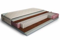 Данная модель матраса создана на основе независимого пружинного блока TFK. В качестве наполнителя используется комбинация из пенополиуретана (материал, который очень похож на поролон, но имеет более мелкие ячейки, за счет этого он обладает большей упругостью и меньше слеживается) и кокосовой койры - натуральный материал, придает естественные вентиляционные свойства, эластичность, прочность, упругость, гигиеничность, антиаллергеность, антимикробность, долговечность. Приятная на ощупь матрасная ткань обладает высокой прочностью и долговечностью. Чехол съемный, имеет молнию по трем сторонам матраса. Плотная классическая полусинтетическая матрасная ткань с особым жаккардовым плетением, приятная на ощупь и безупречно устойчивая к истиранию. Oртопeдический матрас со средним эффектом жесткости. Рекомендована нагрузка до 115 на одно спальное место. Основа: пружинный блок TFK (256/м2), высота: 14 см 1 сторона средняя жесткость, наполнитель - пенополиуретан (3 см),кокосовая койра (1 см) 2