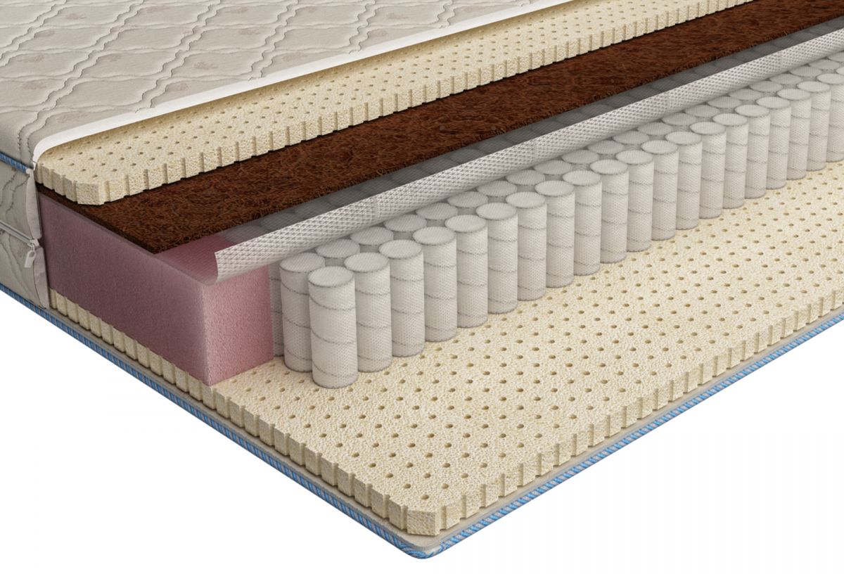 Матрас выполнен на основе блока независимых пружин TFK, состоящего из 256 пружин на 1 кв. м. Особенность данного пружинного блока состоит в том, что все пружины изолированы друг от друга чехлом из нетканого материала. Таким образом, нагрузка распределяется точечно: сжимаются только те пружины, на которые идет давление. Стороны матраса отличаются по жёсткости, что не только упрощает выбор спальной поверхности, но и делает возможным смену уровня комфорта в процессе использования матраса. Эффект достигается за счёт комбинирования натуральных наполнителей – латекса Memory Foam и кокосовой койры. Такая комбинация позволяет получить универсальную среднюю жесткость, за счет этого матрас подойдет людям разного веса и возраста. Мягкая сторона выполнена из латекса Memory Foam (натуральный латекс с добавлением вспененного пенополиуретана). Данный наполнитель имеет пористую структуру, что позволяет при нагрузке сжиматься. Под действием человеческого веса ячейки сжимаются, и материал принимает ана