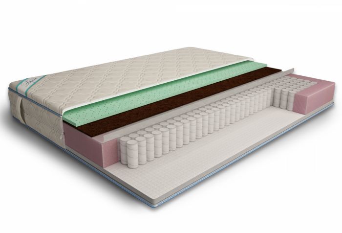 Ложась на такой матрас человек погружается в уютную атмосферу здорового комфорта. Создан на основе независимого пружинного блока TFK. В качестве наполнителя с одной стороны Холлофайбер-Хард - жесткое синтетическое нетканое полотно, обладает низкой сорбционной способностью, не впитывает даже парообразной влаги. Не крошится, не дает усадки. С другой стороны комбинация из кокоса (100% натуральный материал, представляет собой пропаренные волокна кокосового ореха и прессованной в маты правильной формы) и латекса Аloe Vera (натуральный латекс из сока гевеи, в процессе вспенивания смешан с искусственным латексом. В процессе производства в него введены микрокапсулы Алоэ Вера, которые служат мощным природным гипоаллергенным антиоксидантом). Приятная на ощупь матрасная ткань обладает высокой прочностью и долговечностью. Чехол съемный, имеет молнию по трем сторонам матраса. Плотная классическая полусинтетическая матрасная ткань с особым жаккардовым плетением, приятная на ощупь и безупречно устойч