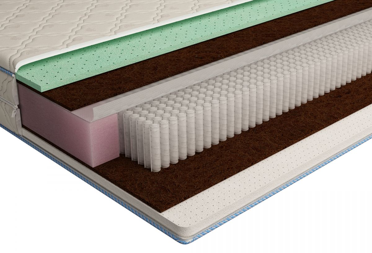 Современный блок "микропакет". Матрас с такой системой предупреждает искривление позвоночника и выдерживает серьезные нагрузки. Приятная на ощупь матрасная ткань обладает высокой прочностью и долговечностью. В качестве наполнителя используются натуральные латекс из сока гевеи, выращенной на бразильских плантациях, в процессе вспенивания смешан с искусственным латексом. Алоэ Вера укрепляет иммунитет, оказывает мягкий расслабляющий эффект, способствует уменьшению воспалительных процессов. Кокосовая койра обеспечивает долговечность и износостойкость, повышенную жесткость. Латекс натуральный -материал, представляющий собой вспененный сок дерева гевеи. Чехол съемный, имеет молнию по трем сторонам матраса. Плотная классическая полусинтетическая матрасная ткань с особым жаккардовым плетением, приятная на ощупь и безупречно устойчивая к истиранию. Основа - Независимый пружинный блок Mikropaket (1000/м2), высота: 14 см 1 сторона - средняя жесткость, наполнитель латекс Алоэ Вера (3см), напо
