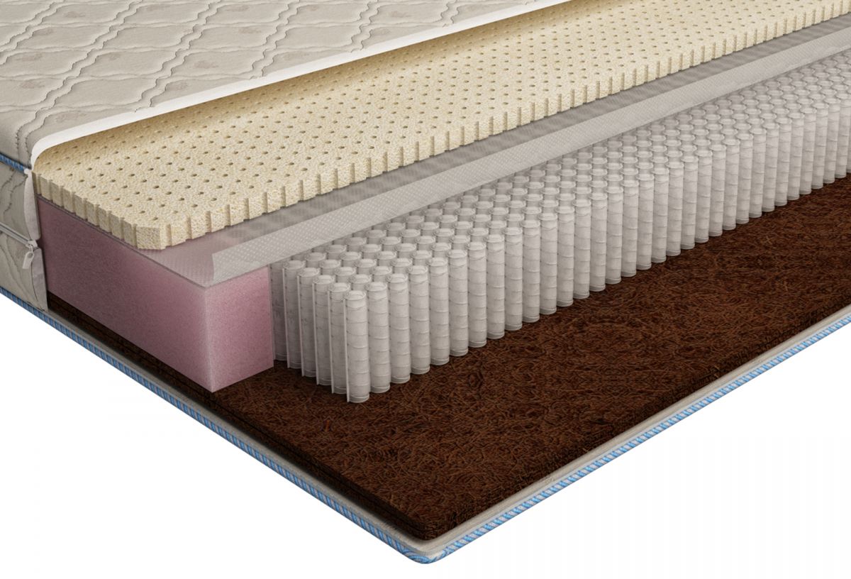 Современный блок "микропакет". Матрас с такой системой предупреждает искривление позвоночника и выдерживает серьезные нагрузки. Сочетание двух противоположных по жесткости наполнителей позволяет гармонично объединить надежную поддержку и приятное ощущение поверхностной мягкости. Латекс Memory Foam имеет пористую структуру — он состоит из множества ячеек. Открытая форма ячеек позволяет им сжиматься. Под действием человеческого веса ячейки сжимаются, и материал принимает анатомическую форму тела. Когда это действие прекращается, материал ещё удерживает форму контуров тела 3-4 секунды, а через 10 секунд возвращается в обратное состояние. Он идеально повторяет контуры Вашего тела, обеспечивая при этом максимальный комфорт. Кокосовая койра- материал не удерживает тепло, прочен, долговечен, не подвержен воздействию влаги. Приятная на ощупь матрасная ткань обладает высокой прочностью и долговечностью. Чехол съемный, имеет молнию по трем сторонам матраса. Плотная классическая полусинтетическая
