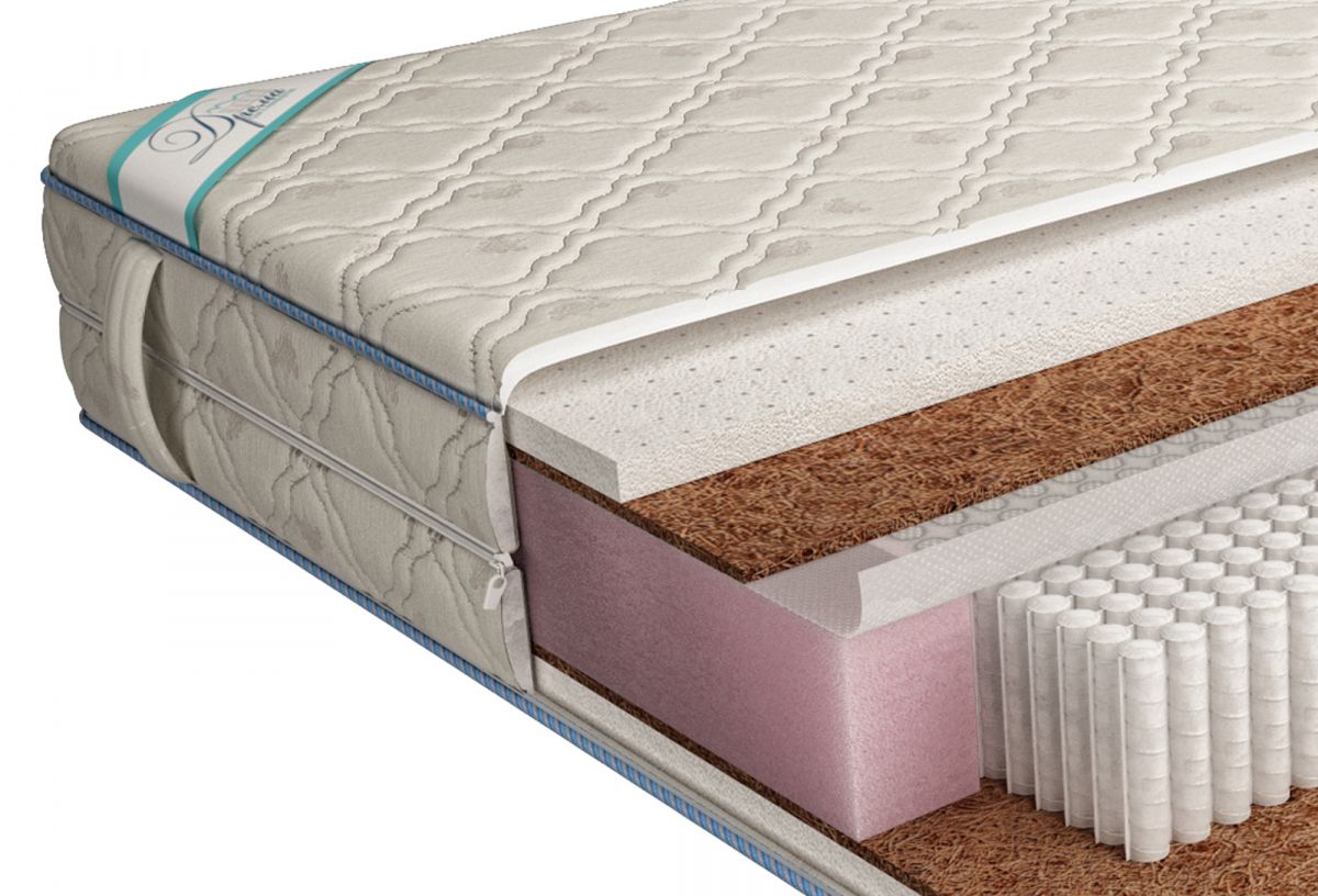 Современный блок "микропакет". Матрас с такой системой предупреждает искривление позвоночника и выдерживает серьезные нагрузки. Сочетание двух противоположных по жесткости наполнителей позволяет гармонично объединить надежную поддержку и приятное ощущение поверхностной мягкости. Тонкая кокосовая койра служит для равномерного распределения давления и значительно повышает устойчивость матраса к деформации. Латекс - натуральный материал, представляющий собой вспененный сок дерева гевеи. Он идеально повторяет контуры Вашего тела, обеспечивая при этом максимальный комфорт. Модель абсолютно симметрична, что позволяет эксплуатировать при необходимости обе стороны. Приятная на ощупь матрасная ткань обладает высокой прочностью и долговечностью. Чехол съемный, имеет молнию по трем сторонам матраса. Плотная классическая полусинтетическая матрасная ткань с особым жаккардовым плетением, приятная на ощупь и безупречно устойчивая к истиранию. Комплектация Основа - Независимый пружинный блок Mikro