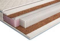 Современный блок "микропакет". Матрас с такой системой предупреждает искривление позвоночника и выдерживает серьезные нагрузки. Сочетание двух противоположных по жесткости наполнителей позволяет гармонично объединить надежную поддержку и приятное ощущение поверхностной мягкости. Тонкая кокосовая койра служит для равномерного распределения давления и значительно повышает устойчивость матраса к деформации. Латекс - натуральный материал, представляющий собой вспененный сок дерева гевеи. Он идеально повторяет контуры Вашего тела, обеспечивая при этом максимальный комфорт. Модель абсолютно симметрична, что позволяет эксплуатировать при необходимости обе стороны. Приятная на ощупь матрасная ткань обладает высокой прочностью и долговечностью. Чехол съемный, имеет молнию по трем сторонам матраса. Плотная классическая полусинтетическая матрасная ткань с особым жаккардовым плетением, приятная на ощупь и безупречно устойчивая к истиранию. Комплектация Основа - Независимый пружинный блок Mikro