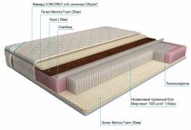 Современный блок "микропакет". Матрас с такой системой предупреждает искривление позвоночника и выдерживает серьезные нагрузки. Сочетание двух противоположных по жесткости наполнителей позволяет гармонично объединить надежную поддержку и приятное ощущение поверхностной мягкости. Кокосовая койра обеспечивает долговечность и износостойкость, латекс Memory Foam имеет пористую структуру — он состоит из множества ячеек. Открытая форма ячеек позволяет им сжиматься. Под действием человеческого веса ячейки сжимаются, и материал принимает анатомическую форму тела. Когда это действие прекращается, материал ещё удерживает форму контуров тела 3-4 секунды, а через 10 секунд возвращается в обратное состояние. Он идеально повторяет контуры Вашего тела, обеспечивая при этом максимальный комфорт Койра равномерно распределяет давление, а латекс создает выраженный анатомический эффект. Новейший материал Memory Foam запоминает оптимальную форму для поддержки вашего тела. Благодаря так называемой «воздушно