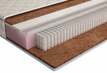 Эта модель идеально подходит для любителей твердых поверхностей. Более того, различное расположение слоев натурального наполнителя (латекса и кокоса) по обеим сторонам матраса позволяет повышать уровень жесткости спального места в зависимости от ваших потребностей. Натуральные наполнители и независимый пружинный блок-серьезная забота о своем здоровье. Натуральный латекс - не вызывает аллергии, не впитывает влагу, проявляет бактерицидные свойства. Он идеально повторяет контуры вашего тела, обеспечивая при этом максимальный комфорт и имеет длительный срок службы при постоянной нагрузке. Кокосовое волокно (койра)-натуральный материал, обладает бактерицидным свойством, не гниет ни при какой влажности, не вызывает аллергических реакций. Пружинный блок «мультипакет», обеспечивает повышенный анатомический и oртопeдический эффект за счет большего количества пружин. Он состоит из отдельных независимых пружин, заключенных в тканевые чехлы. Матрас долговечен, поскольку пружины не связаны друг с д