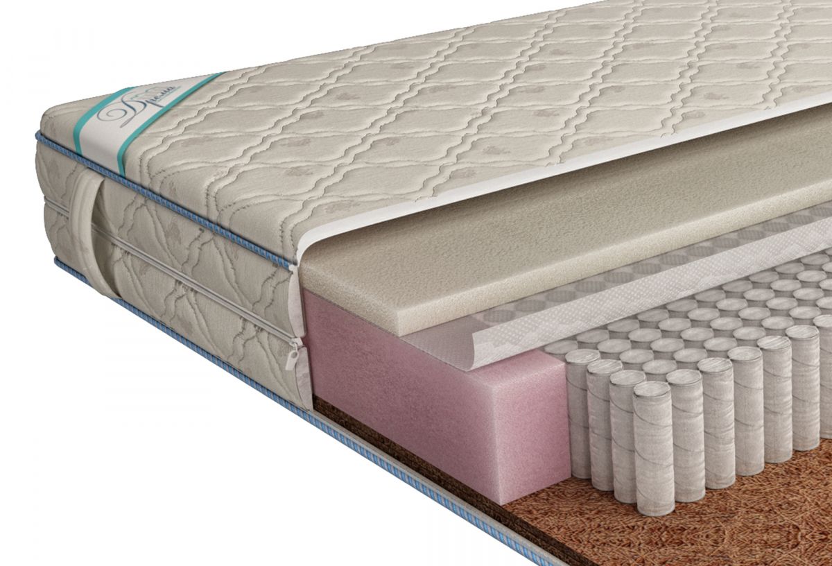 Для желающих приобрести комфортное спальное место за умеренную цену идеально подойдет эта модель. Наполнителями служат искусственный латекс и кокосовое волокно, что придает сторонам матраса совершенно разный уровень жесткости. Искусственный латекс, пропитанный антибактериальным гипоаллергенным составом. Латекс имеет мелкоячеистую структуру, которая вместе с пропиткой обеспечивает гигроскопичность. По своим физическим свойствам искусственный латекс более упругий по сравнению с натуральным латексом. Кокосовое волокно (койра)-натуральный материал, обладает бактерицидным свойством, не гниет ни при какой влажности, не вызывает аллергических реакций. Полужесткая структура койры обеспечивает оптимальную упругость и долговечность матраса. Пружинный блок «мультипакет», обеспечивает повышенный анатомический и oртопeдический эффект за счет большего количества пружин. Он состоит из отдельных независимых пружин, заключенных в тканевые чехлы. Приятная на ощупь матрасная ткань обладает высокой прочно