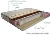 Матрас не симметричен по жесткости относительно пружинного блока, т.е. имеет две стороны разной жесткости. Одна сторона средняя с наполнителем кокос и Латекс-Memory Foаm, другая только высокоэластичный Memory Foаm ППУ - мягкая сторона. Латекс-Memory Foаm и высокоэластичный Memory Foаm ППУ - это современные материалы, которые тонко реагируют на вес и тепло человека и легко подстраиваются, повторяя контуры тела. Они практически не оказывают давления на тело лежащего, фактически приобретая его форму. Кроме того, они обладают антимикробными свойствами. Преимущества Латекс Memory Foаm - менее чувствительный к температуре окружающей среды и дает хорошую воздухопроницаемость. Кокосовое волокно (койра)-натуральный материал, обладает бактерицидным свойством, не гниет ни при какой влажности, не вызывает аллергических реакций. Пружинный блок «мультипакет», обеспечивает повышенный анатомический и oртопeдический эффект за счет большего количества пружин. Он состоит из отдельных независимых пружин,