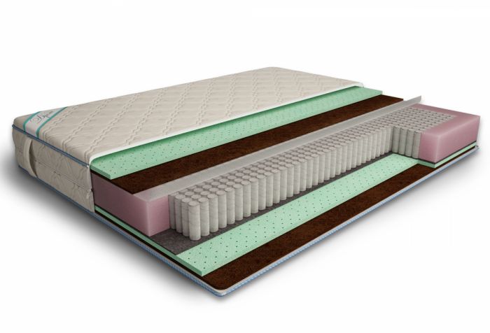 В данной модели в качестве наполнителей используются Латекс "Aloe Vera" и кокосовое волокно. Стороны симметричны по жесткости. Латекс "Aloe Vera" обладает антибактериальной и пыли-, клещестойкой защитой. Не токсичен и не аллергенен. В процессе его производства были введены микрокапсулы Алоэ Вера— мощный природный гипоаллергенный антиоксидант. Алоэ Вера укрепляет иммунитет, оказывает мягкий расслабляющий эффект, способствует уменьшению воспалительных процессов. Кокосовое волокно (койра)-натуральный материал, обладает бактерицидным свойством, не гниет ни при какой влажности, не вызывает аллергических реакций. Войлок - нетканый материал, состоит из натуральных и синтетических волокон. Пружинный блок «мультипакет», обеспечивает повышенный анатомический и oртопeдический эффект за счет большего количества пружин. Он состоит из отдельных независимых пружин, заключенных в тканевые чехлы. Матрас долговечен, поскольку пружины не связаны друг с другом, и повреждение, по каким-либо причинам, одн