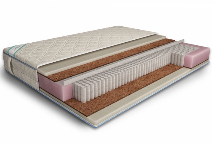 В данной модели в качестве наполнителей используются искусственный латекс и кокосовое волокно. Стороны симметричны по жесткости. Искусственный латекс, пропитанный антибактериальным гипоаллергенным составом. Латекс имеет мелкоячеистую структуру, которая вместе с пропиткой обеспечивает гигроскопичность. По своим физическим свойствам искусственный латекс более упругий по сравнению с натуральным латексом. Кокосовое волокно (койра)-натуральный материал, обладает бактерицидным свойством, не гниет ни при какой влажности, не вызывает аллергических реакций. Пружинный блок «мультипакет», обеспечивает повышенный анатомический и oртопeдический эффект за счет большего количества пружин. Он состоит из отдельных независимых пружин, заключенных в тканевые чехлы. Матрас долговечен, поскольку пружины не связаны друг с другом, и повреждение, по каким-либо причинам, одной из них, не влечет проседания соседней пружины. У такого пружинного блока исключено появление скрипа. Плотная классическая полусинтетич