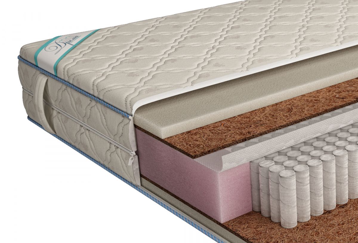 В данной модели в качестве наполнителей используются искусственный латекс и кокосовое волокно. Стороны симметричны по жесткости. Искусственный латекс, пропитанный антибактериальным гипоаллергенным составом. Латекс имеет мелкоячеистую структуру, которая вместе с пропиткой обеспечивает гигроскопичность. По своим физическим свойствам искусственный латекс более упругий по сравнению с натуральным латексом. Кокосовое волокно (койра)-натуральный материал, обладает бактерицидным свойством, не гниет ни при какой влажности, не вызывает аллергических реакций. Пружинный блок «мультипакет», обеспечивает повышенный анатомический и oртопeдический эффект за счет большего количества пружин. Он состоит из отдельных независимых пружин, заключенных в тканевые чехлы. Матрас долговечен, поскольку пружины не связаны друг с другом, и повреждение, по каким-либо причинам, одной из них, не влечет проседания соседней пружины. У такого пружинного блока исключено появление скрипа. Плотная классическая полусинтетич