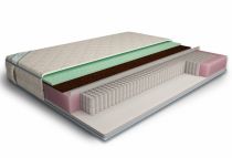 Стороны симметричны по жесткости. С одной стороны в качестве наполнителя используется Латекс "Aloe Vera" и кокосовое волокно (койра). Латекс "Aloe Vera" обладает антибактериальной и пыли-, клещестойкой защитой. Не токсичен и не аллергенен. В процессе его производства были введены микрокапсулы Алоэ Вера— мощный природный гипоаллергенный антиоксидант. Алоэ Вера укрепляет иммунитет, оказывает мягкий расслабляющий эффект, способствует уменьшению воспалительных процессов. Кокосовое волокно (койра)-натуральный материал, обладающий бактерицидным свойством, не гниет ни при какой влажности, не вызывает аллергических реакций. С другой стороны Холлофайбер-Хард - жесткое синтетическое нетканое полотно, обладает низкой сорбционной способностью, не впитывает даже парообразной влаги. Не крошится, не дает усадки. Пружинный блок «мультипакет», обеспечивает повышенный анатомический и oртопeдический эффект за счет большего количества пружин. Он состоит из отдельных независимых пружин, заключенных в т