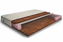 Жесткая модель с зависимым блоком пружин. С двух сторон используется кокосовая койра- натуральный материал, представляет собой пропаренные волокна кокосового ореха объемнолатексированные натуральным латексом из прессованной в маты правильной формы. Естественные вентиляционные свойства, эластичность, прочность, упругость, гигиеничность, антиаллергеность, антимикробность, долговечность. Модель абсолютно симметрична, что позволяет эксплуатировать при необходимости обе стороны. Приятная на ощупь матрасная ткань обладает высокой прочностью и долговечностью. Чехол съемный, имеет молнию по трем сторонам матраса. Плотная классическая полусинтетическая матрасная ткань с особым жаккардовым плетением, приятная на ощупь и безупречно устойчивая к истиранию. Комплектация Основа -Пружинный блок Bonnel 165 шт/м2, высота: 12 см 1 сторона жесткая – наполнитель кокос (3см) 2 сторона жесткая – наполнитель кокос (3 см) Высота матраса: 18 см Жесткость матраса: жесткий Чехол: Жаккард «Concern»